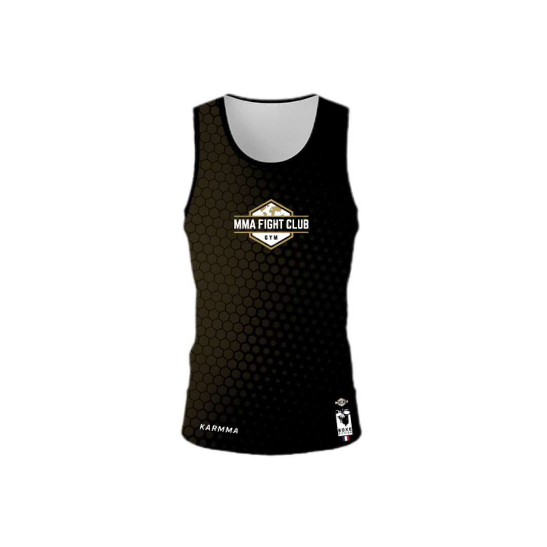 La coupe ample du débardeur assure une liberté de mouvement maximale pour les épaules et le buste, tandis que le short fendu sur les côtés permet des appuis dynamiques et une excellente ventilation. Les deux pièces sont ornées des visuels officiels KARMMA et MMA FIGHT CLUB GYM, avec une finition BOXING FIGHTER dans le dos pour affirmer ton style sur et hors du ring.